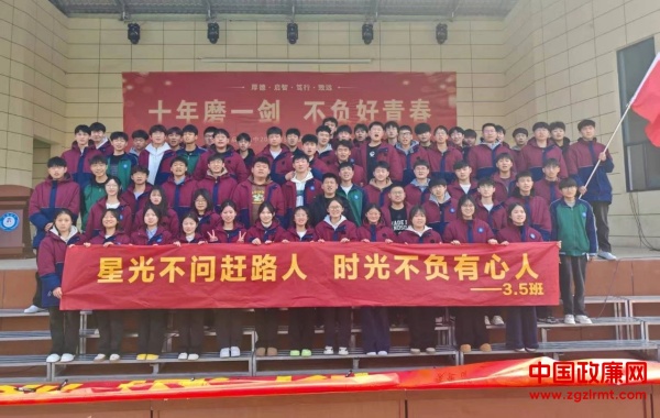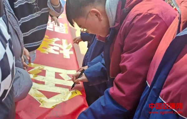 誓师大会进入尾声,激昂音乐里,“青霄有路终须至,金榜题名指日归” 横幅展开,同学们眼神坚定,依次上前签名,许下对高考的庄重承诺。随后,各班高举班旗登上主席台,在飘扬的班旗下,大家绽放笑容合影留念。大会虽落幕,但追梦路开启,他们将凭此决心冲刺高考,奔赴理想。