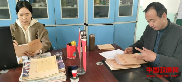 视导组成员在办公室检查该校教师的作业批改情况,检查组对作业情况进行细致查阅、分析和评价。