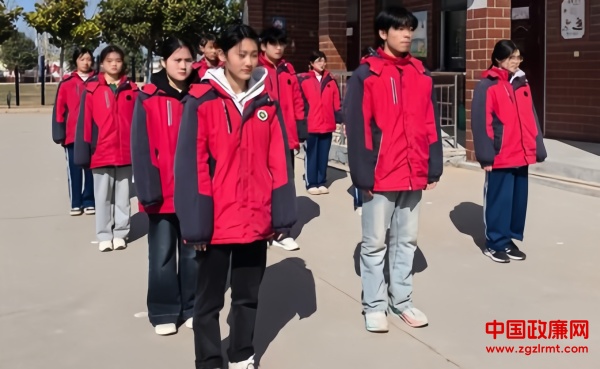 清晨的第一缕阳光洒在校园里,微风轻拂,带来了新一天的希望。二节课后学生们身着整齐划一的校服,国旗班的同学早已准备就绪。