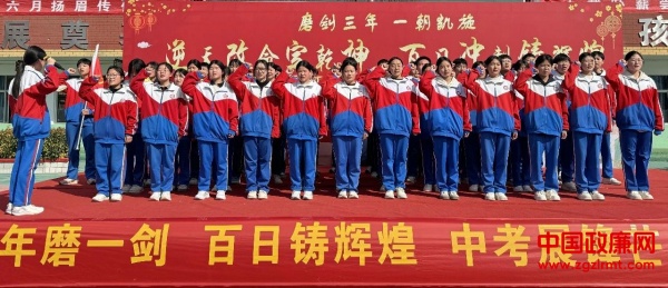 随后,九年级全体学生以班级为单位进行了庄严的宣誓。铿锵有力的誓言响彻云霄,表达了同学们决胜中考的坚定信念和昂扬斗志。