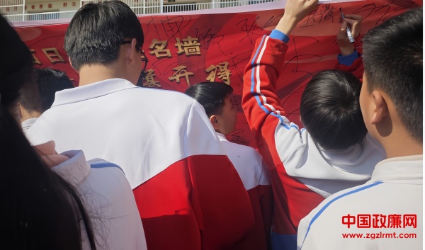 最后,全体九年级学子在激昂的音乐声中,依次跃过“龙门”,并在签名墙上郑重签下自己的名字,表达了他们挑战自我、超越自我、决胜中考的信心和决心。