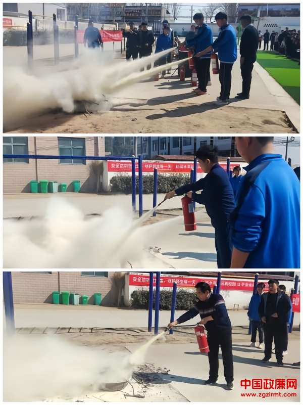 祥符区消防救援大队孟令超从火灾的预防、火场自救及逃生方法等消防安全基本常识进行了讲解,并现场示范灭火器的使用方法,指导师生现场进行灭火。