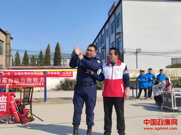 祥虎救援队远征教官针对防溺水安全,与老师和同学积极互动,并邀请杨校长和田主任演示溺水场景,现场教大家正确救助方法。
