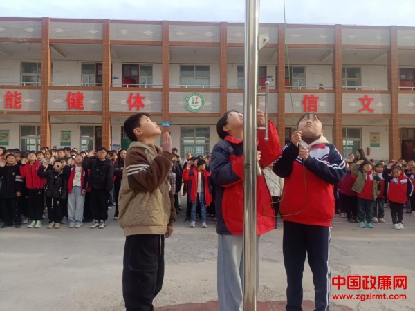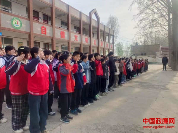 抓早抓小抓关键,更快降低近视率--开封市祥符区八里湾镇闫楼小学升旗活动