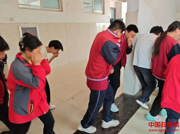 随着校园内警报声的骤然响起,演练正式开始。各班级学生在老师的引导下迅速反应,用湿毛巾捂住口鼻,弯腰低姿,沿着疏散通道快速、有序地撤离教室。各楼层的安全引导员坚守岗位,确保疏散通道畅通无阻。仅用时1.5分钟,全校师生便安全疏散到操场指定区域,各班级迅速清点人数并上报,演练的疏散环节顺利完成。