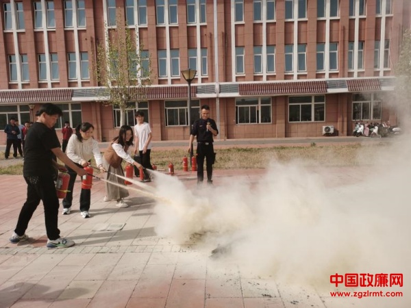 随后,陈教员为大家讲解灭火器的使用方法,他手持干粉灭火器,现场演示了灭火器的正确操作流程:“一提、二拔、三握、四压”,并详细讲解了灭火器的使用注意事项。在演练场地设置的模拟火源旁,学生代表、老师代表在教员的指导下,分组进行了灭火器实际操作练习。大家积极参与,按照所学方法成功扑灭了模拟火源,现场气氛热烈。