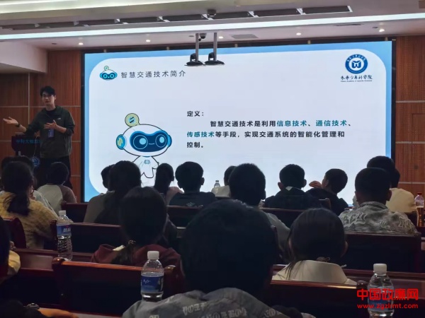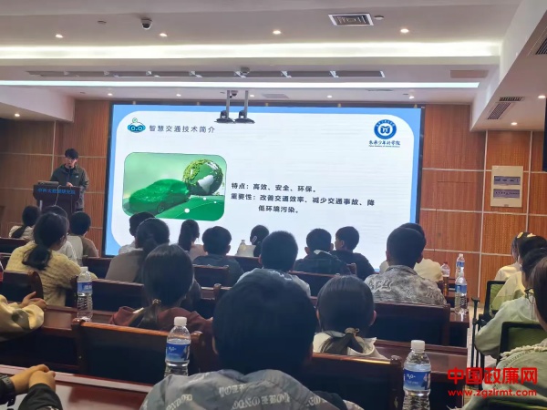 随后,学生聆听了关于智慧交通技术的精彩讲座。主讲老师详细介绍了智慧交通的特点——高效、安全和环保,以及它在改善交通安全效率、减少交通事故及降低环境污染等方面的重要作用。学生们不仅学到了理论知识,还观看了实际案例演示,进一步加深了理解。