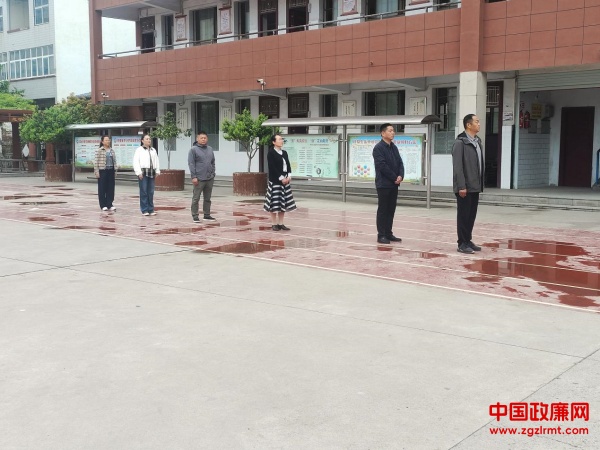 仪式进行第一项:升国旗奏国歌 全体师生行注目礼