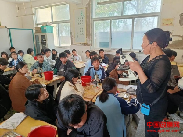 在九年级生物实验室,董校长驻足观察学生们的实验操作。他俯身与正在调试显微镜的学生交流:“观察细胞结构时,有没有遇到什么困难?”学生们踊跃分享:“调焦总找不准最佳角度”“临时装片容易产生气泡”……针对这些问题,董校长结合自身经验耐心指导,并与授课教师探讨改进策略。他强调:“实验课是科学思维的启蒙课,要多鼓励学生动手实践,在失败中总结经验。”现场氛围热烈,学生们的探索热情被进一步点燃。