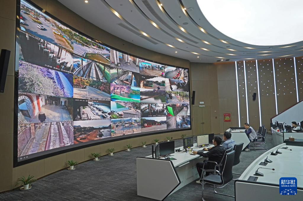 在江西龙虎山风景名胜区智慧管理中心,工作人员通过智慧调度系统监控管理景区(3月25日摄)。