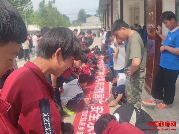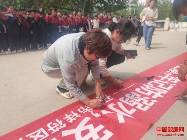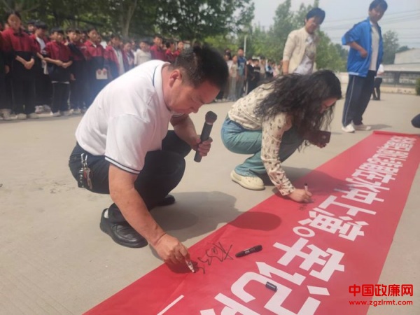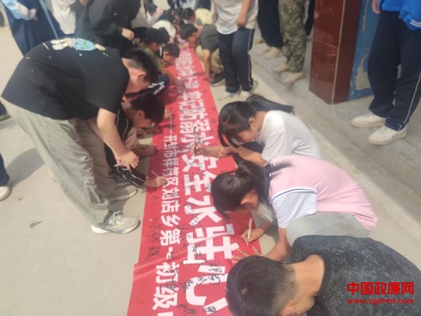 杨俊明副校长带领全体老师在防溺水安全横幅上签字。