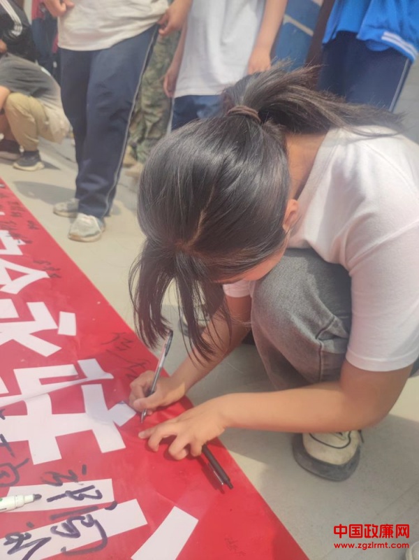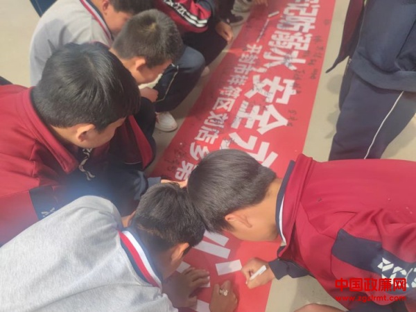 接着,全体学生有序的排好队,拿起笔在防溺水横幅上郑重地签上自己的名字,以实际行动来表明自己珍爱生命,预防溺水的承诺!