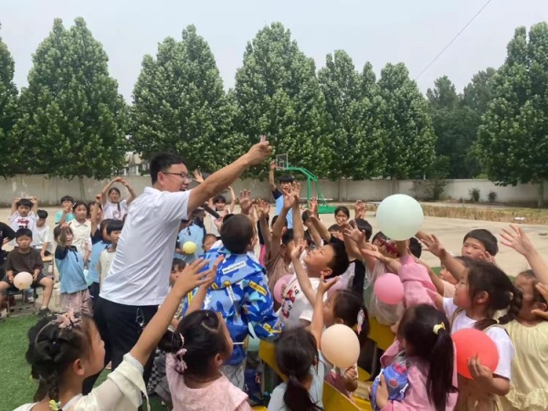 孩子们还收到了彩色气球和其他小礼物,他们兴奋地挥舞着手中的物品,与周围的伙伴分享这份喜悦。