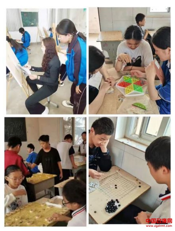 学校每周开展两次校园广播活动,为学生的健康成长提供良好的文化氛围。定期开展丰富多彩的社团活动,如:美术社团、音乐舞蹈社团、乒乓球社团、羽毛球社团、五子棋社团、象棋社团等,满足学生的特色发展需求,丰富学生的课余生活。每年举行一次毕业季文艺汇演,为学生搭建起一个风采展示的舞台,努力让学生在文化知识学习的同时,能够有兴趣爱好的培养,还有才艺技能的展示。步入校园,随处可见的有文化宣传栏、美术作品展示栏、教学业务展示栏、各种宣传标语等,营造浓厚的文化氛围,有助于培养学生的文化素养和审美情趣。