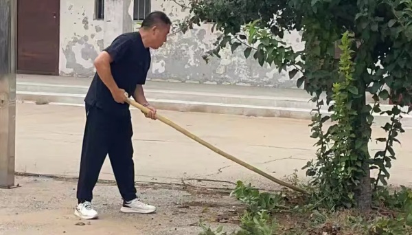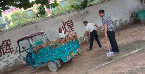 卫生区的清扫同样热火朝天。操场角落的落叶、花坛边的杂草、楼梯间的灰尘,都成了教师们的“清理目标”。大家不怕脏、不怕累,有的用手拔掉缝隙里的杂草,有的用大铲铲去大片的枯草,还有三五个老师配合将杂草、树叶和垃圾装到车上运出学校……汗水浸湿了衣领,却没一个人停下手中的活。“卫生区是校园的‘脸面’,咱们多花点心思,孩子们就能在更舒适的环境里活动。”六年级班主任孙老师一边清理花坛,一边笑着说