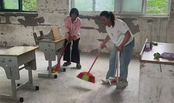 三尺讲台焕新颜,躬行清扫迎童归——河南省开封市祥符区范村乡传里砦小学教师提前备战开学季