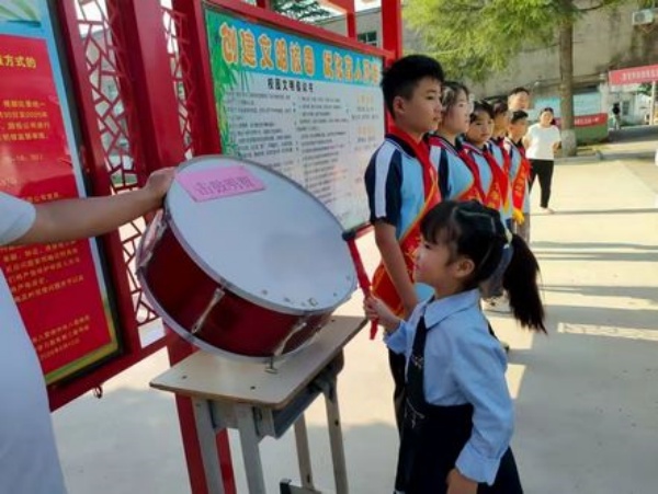 穿过长廊,新生们排队敲响智慧鼓,鼓声洪亮,象征着他们将在新学期开启智慧,勇敢求知。每一声鼓响都伴随着孩子们的微笑和家长的掌声。