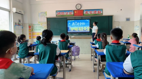 清晨的课堂上,不同年级的“开学第一课”各有侧重,却同样充满温度。一年级的教室里,班主任们化身“校园向导”,通过“找座位小比赛”“认识我的新伙伴”“安全标志我知道”等互动游戏,帮刚入学的孩子熟悉校园环境,建立集体归属感。中高年级的课堂则多了“回顾与展望”的色彩。同学们坐在明亮的教室里,分享暑假里的“难忘瞬间” 班主任则引导大家写下“新学期的小约定” ,今天的课不只是‘收心’,更是帮孩子们重新找到‘校园里的节奏’。