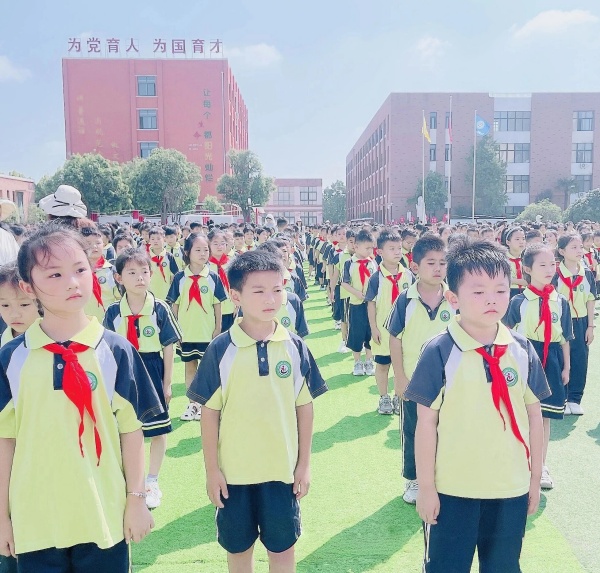 典礼在庄严的升旗仪式中拉开帷幕。全体师生面向国旗台肃立,少先队员行队礼,高唱中华人民共和国国歌。冉冉升起的五星红旗,在晨光中熠熠生辉,承载着全体师生对新学期的美好憧憬。