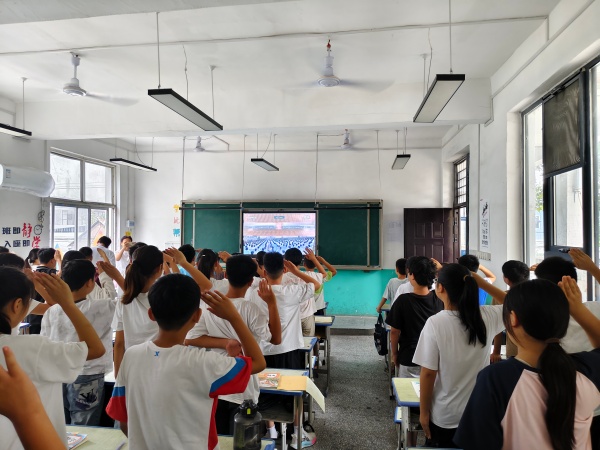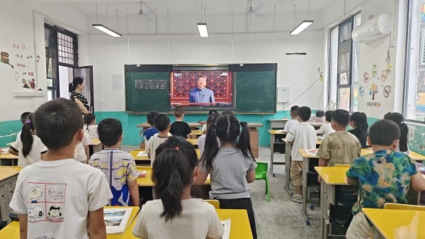 中国政廉网河南讯(禹志军):鲜艳的五星红旗在教室屏幕中轻轻摇曳,孩子们专注的目光投向屏幕,2025年9月3日上午,开封市祥符区罗王镇胡寨中心学校组织全体师生270余人集体观看中国人民抗日战争暨世界反法西斯战争胜利80周年阅兵仪式,一堂生动的爱国主义教育课正在上演。 上午9时,阅兵仪式正式开始。当庄严的国歌响起,同学们全体起立,目光紧紧地盯着屏幕,齐声高唱国歌,鲜艳的五星红旗在心中冉冉升起。