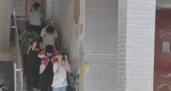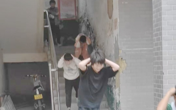 9月18日上午9时18分,伴随着校园广播中“1931年9月18日,日本关东军蓄意制造柳条湖事件,悍然发动侵华战争……”的历史旁白,急促的疏散警报准时响起。演练正式开始,各个班级科任教师迅速组织学生起身,按照“弯腰、捂口鼻、不推搡、快而有序”的要求,沿预定疏散路线向操场指定区域撤离。楼梯口、转角处的教师引导员全程值守,及时疏导人流,避免拥挤堵塞;学生们听从指挥、动作规范,仅用2分20秒便完成全部疏散,近300名师生安全抵达操场集合点。