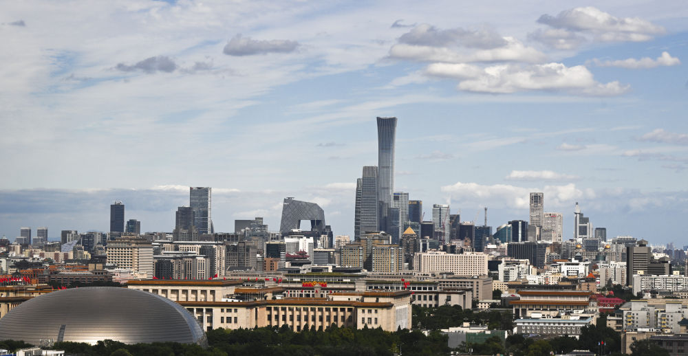 北京天气晴好,蓝天白云映衬着雄伟的建筑群(2024年9月14日摄)。新华社记者 王建华 摄