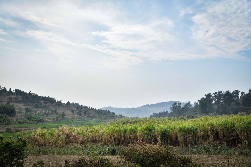 2024年8月15日拍摄的卢旺达南方省胡耶区的菌草田。新华社记者 韩旭 摄