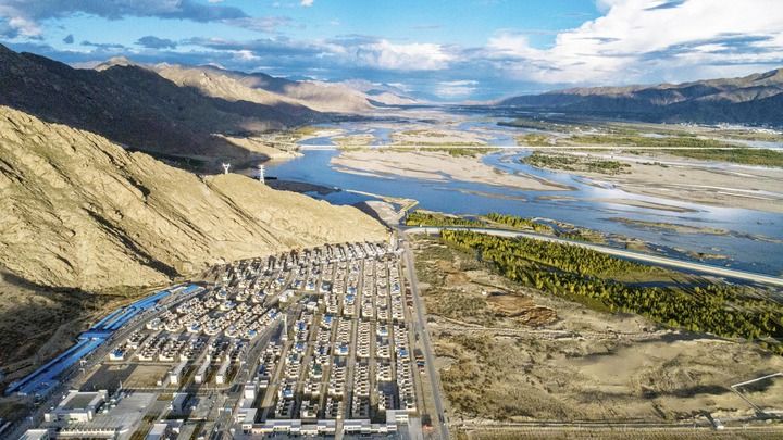 这是位于西藏山南市贡嘎县的森布日搬迁安置点(2020年9月24日摄,无人机照片)。新华社记者 孙非 摄