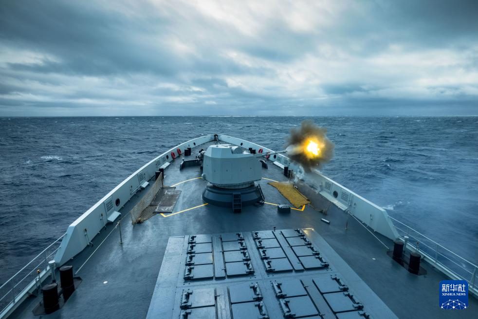 3月29日,在中泰“蓝色突击-2025”海军联合训练中,中方参训舰艇许昌舰在联合对海打击科目中组织主炮射击训练。新华社发(贾晓鹏 摄)