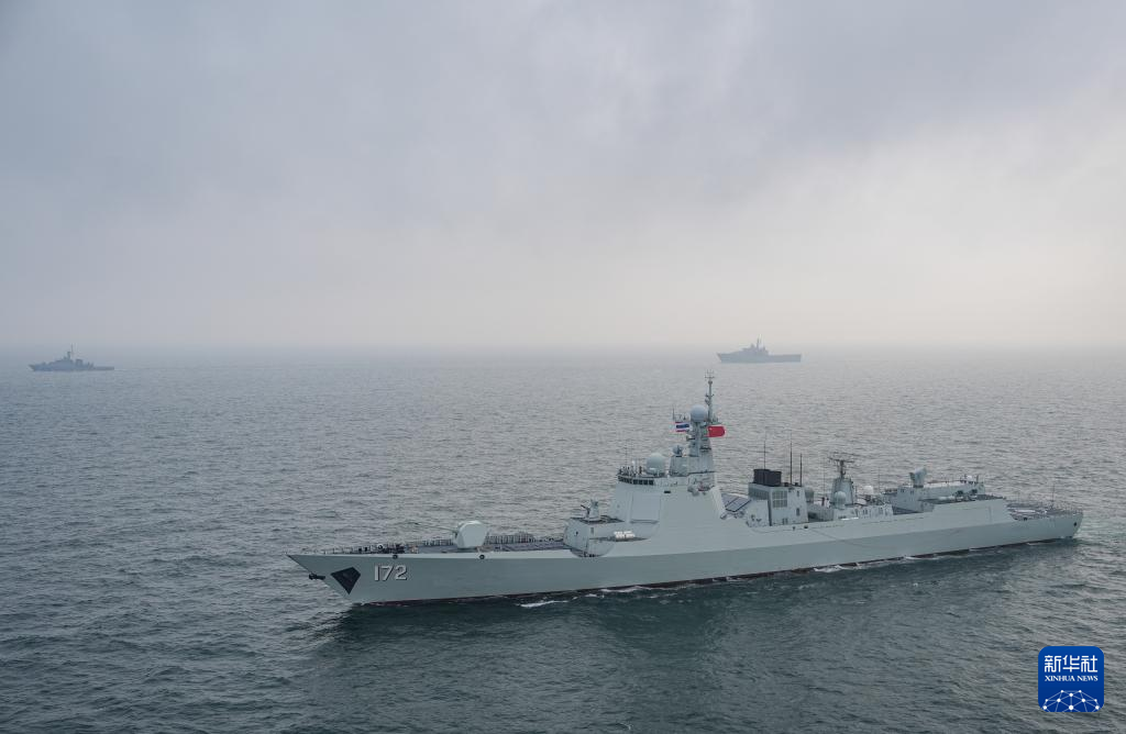 湛江附近海空域,云幕低垂,偶有小雨。中泰海上舰艇编队持续展开编队运动、联合对海打击、联合搜救、海上补给等科目训练。
