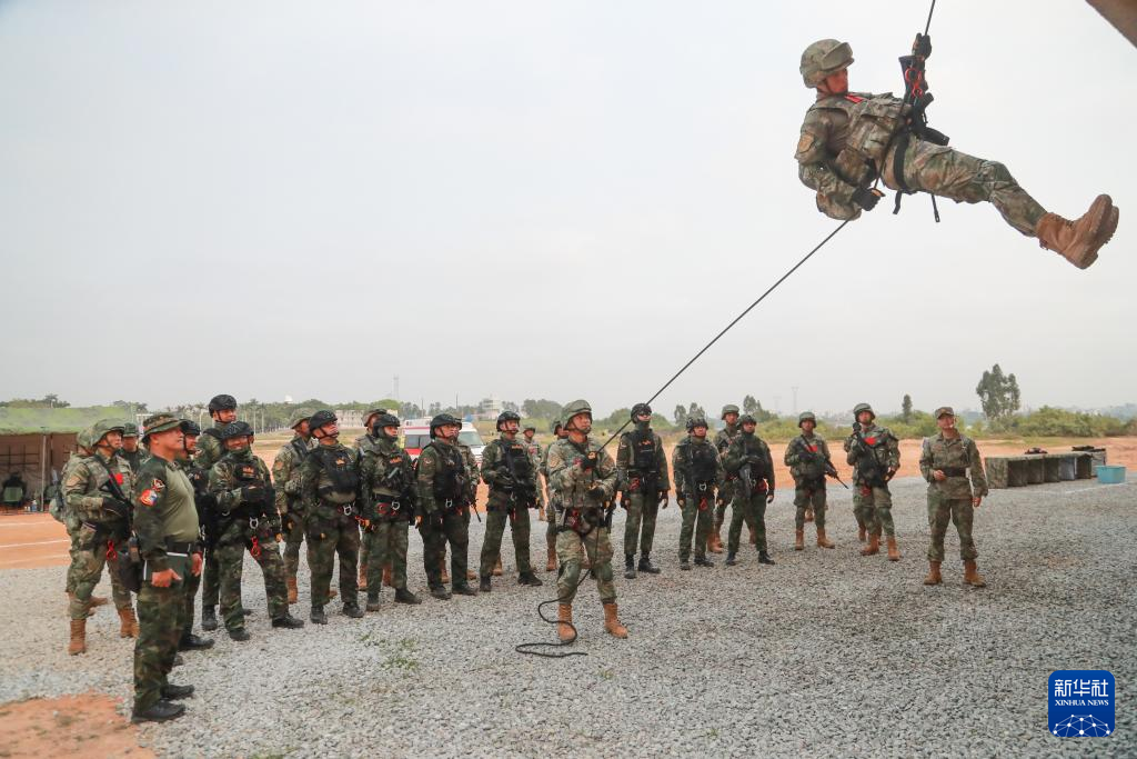 此次训练采用粗绳滑降方式,需要参训队员依靠自身制动完成滑降,难度更高。泰方参训队员蓬习·坎迪说:“在机滑降训练中,我们从中国同行身上,学习到了宝贵的战术经验,通过这次交流,我们深切感受到中方对泰方的友好情谊。”