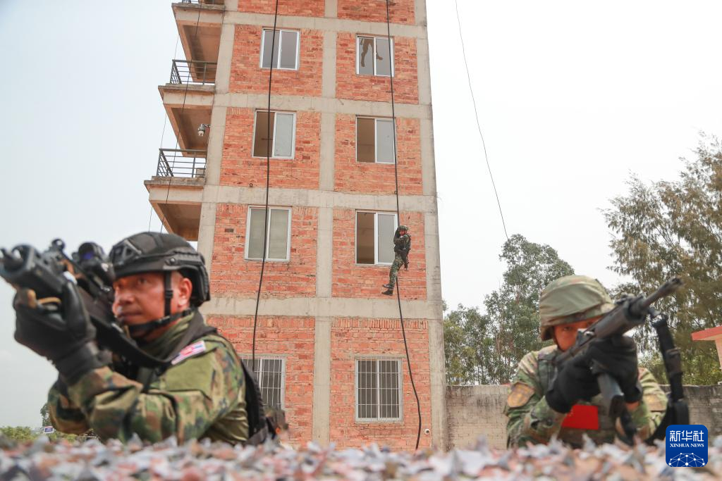 3月28日,在中泰“蓝色突击-2025”海军联合训练中,中泰双方队员进行陆战班综合演练。新华社发(王玮 摄)