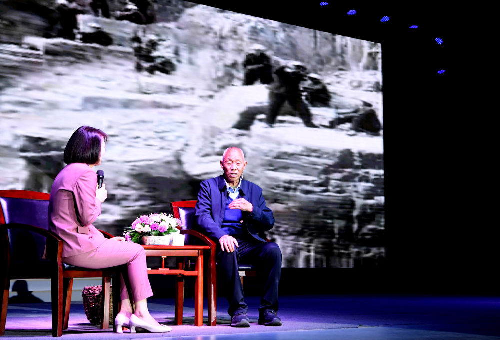 2025年3月26日,张买江(右)在红旗渠干部学院向学员讲述当年修渠的情景。红旗渠建设之初,张买江的父亲牺牲在工地,年仅13岁的张买江遵照母亲“不修成渠就不要回家”的嘱咐走上工地,一直奋斗到红旗渠建成通水。依托红旗渠干部学院等机构,当地打造了一系列特色鲜明的教学课程,构建了以红旗渠精神传承为主题的红色文化培训体系。