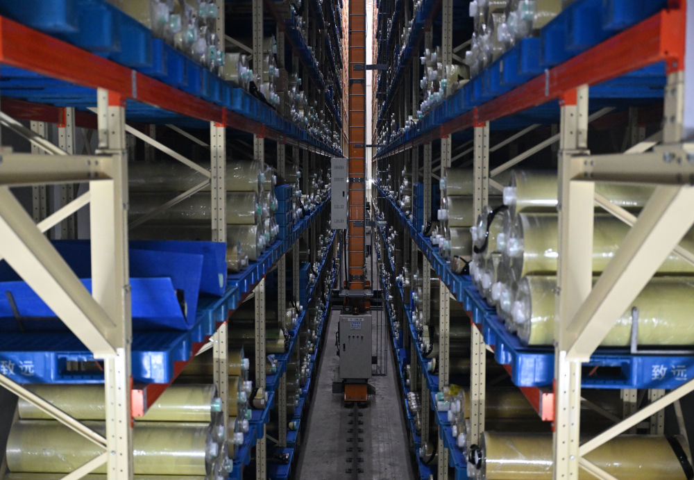 近年来,林州市多措并举积极促进民营经济高质量发展,培育了一批技术密集型企业,逐渐成为当地经济发展新引擎。这是2025年3月19日在林州致远电子科技有限公司拍摄的自动化仓储系统。