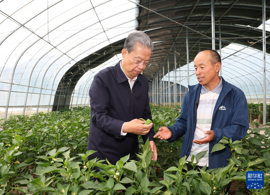 7月6日至8日,中共中央政治局常委、全国人大常委会委员长赵乐际在青海调研。这是7月8日,赵乐际在海东市乐都区寿乐镇高原冷凉蔬菜基地调研。新华社记者 黄敬文 摄