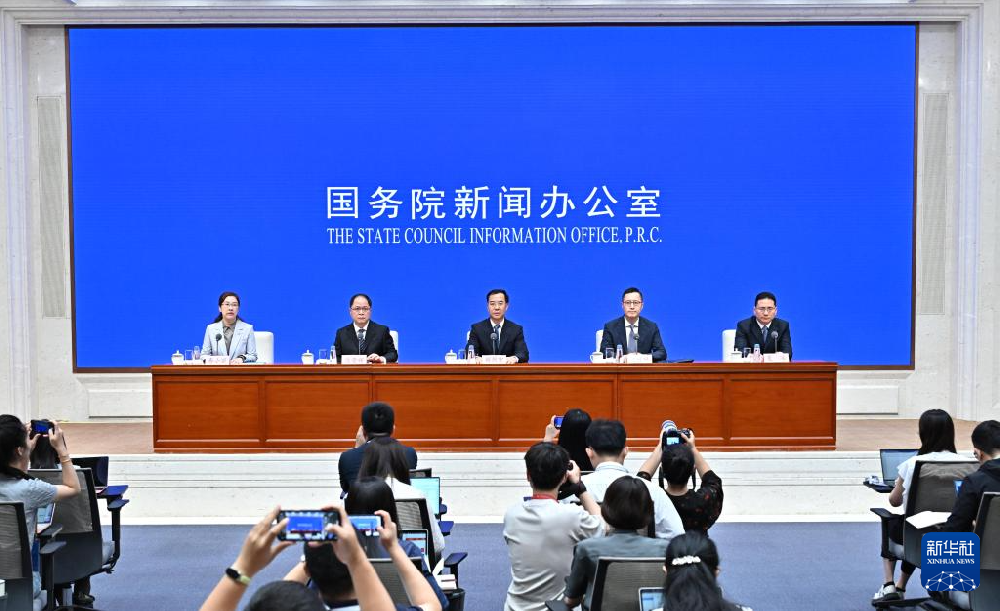 8月14日,国务院新闻办公室在北京举行“高质量完成‘十四五’规划”系列主题新闻发布会。国家发展改革委党组成员、国家数据局局长刘烈宏,国家数据局副局长沈竹林,国家数据局副局长陈荣辉,国家数据局副局长夏冰介绍“十四五”时期数字中国建设发展成就,并答记者问。新华社记者 李鑫 摄