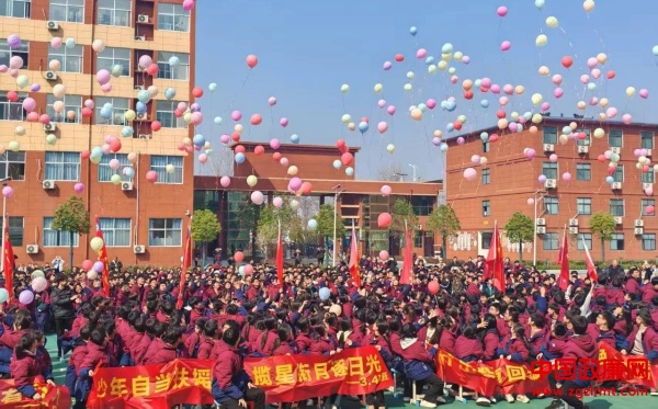在梦想飞扬环节,学生们集体放飞书写着梦想的气球。五彩斑斓的气球承载着同学们对未来的憧憬,缓缓飘向天空,象征着大家追逐梦想的决心与勇气。