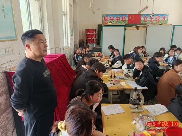 在九年级生物实验室,董校长驻足观察学生们的实验操作。他俯身与正在调试显微镜的学生交流:“观察细胞结构时,有没有遇到什么困难?”学生们踊跃分享:“调焦总找不准最佳角度”“临时装片容易产生气泡”……针对这些问题,董校长结合自身经验耐心指导,并与授课教师探讨改进策略。他强调:“实验课是科学思维的启蒙课,要多鼓励学生动手实践,在失败中总结经验。”现场氛围热烈,学生们的探索热情被进一步点燃。
