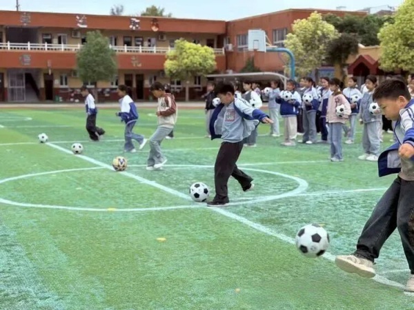 唐老师以足球明星的故事和趣味球性练习开场,瞬间点燃了孩子们的运动热情,充分做好了热身准备。