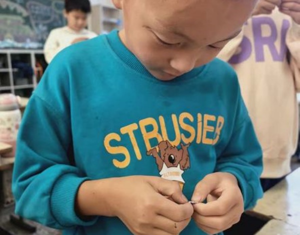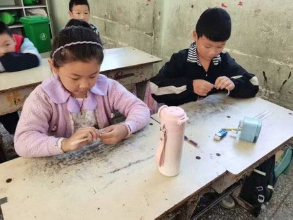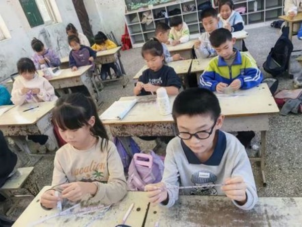 手工课上,孩子们总是格外投入。他们围坐在课桌旁,手里拿着剪刀、胶水和各色材料,眼神专注地完成自己的作品。有的在折叠卡纸,有的在粘贴装饰,教室里只能听到轻微的剪裁声和偶尔的小声交流。这种沉浸式的体验,让孩子们在动手过程中培养了耐心和细致。