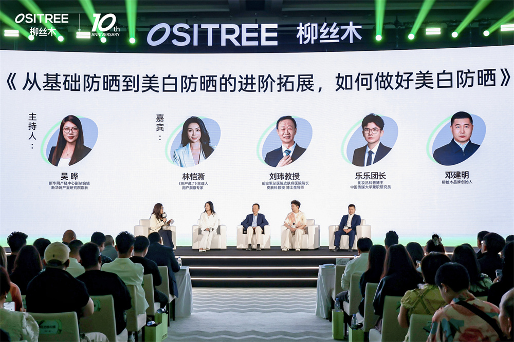 品牌升级发布会上,柳丝木举办了以“从基础防晒到美白防晒的进阶拓展,如何做好美白防晒”为主题的圆桌论坛。论坛由新华网产经中心副总编辑、产业研究院院长吴晔主持,柳丝木品牌创始人邓建明、前空军总医院皮肤病医院院长刘玮教授、知名化妆品科普博主乐乐团长、《用户说了》主理人林恺澌分别从科学、专业测评、消费者洞察等维度对美白防晒的辩证关系进行深度探讨和前沿解析,为防晒市场的未来趋势和发展方向带来新的启发。