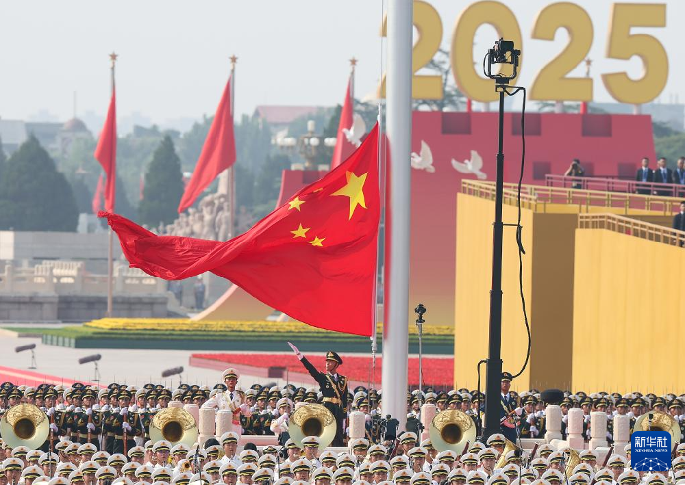 9月3日,纪念中国人民抗日战争暨世界反法西斯战争胜利80周年大会在北京隆重举行。这是天安门广场举行隆重的升国旗仪式。